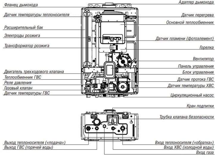 В структуру котлов Kiturami World Alpha S входят следующие элементы:
